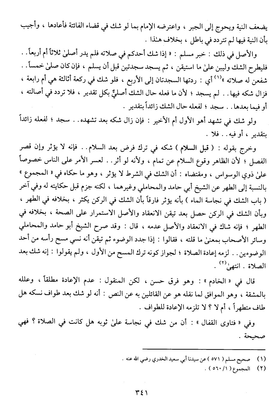 والأصل في ذلك: خبر مسلم: (إذ شك أحدكم في صلاته فلم يدر كم أصلى ثلاثاً أم أربعاً .. فليطرح الشك وليبن على ما استيقن، ثم يسجد سجدتين قبل أن يسلم، فإن كان صلى خمساً .. شفعن له صلاته) أي: ردتها السجدتان إلى الأربع، فلو شك في ركعة أثالثة هى أم رابعة، فزال شكه فيها .. لم يسجد، لأن ما فعله حال الشك أصلي بكل تقدير، فلا تردد في أصالته، أو فيما بعدها .. سجد، لفعله حال الشك زائد بتقدير.