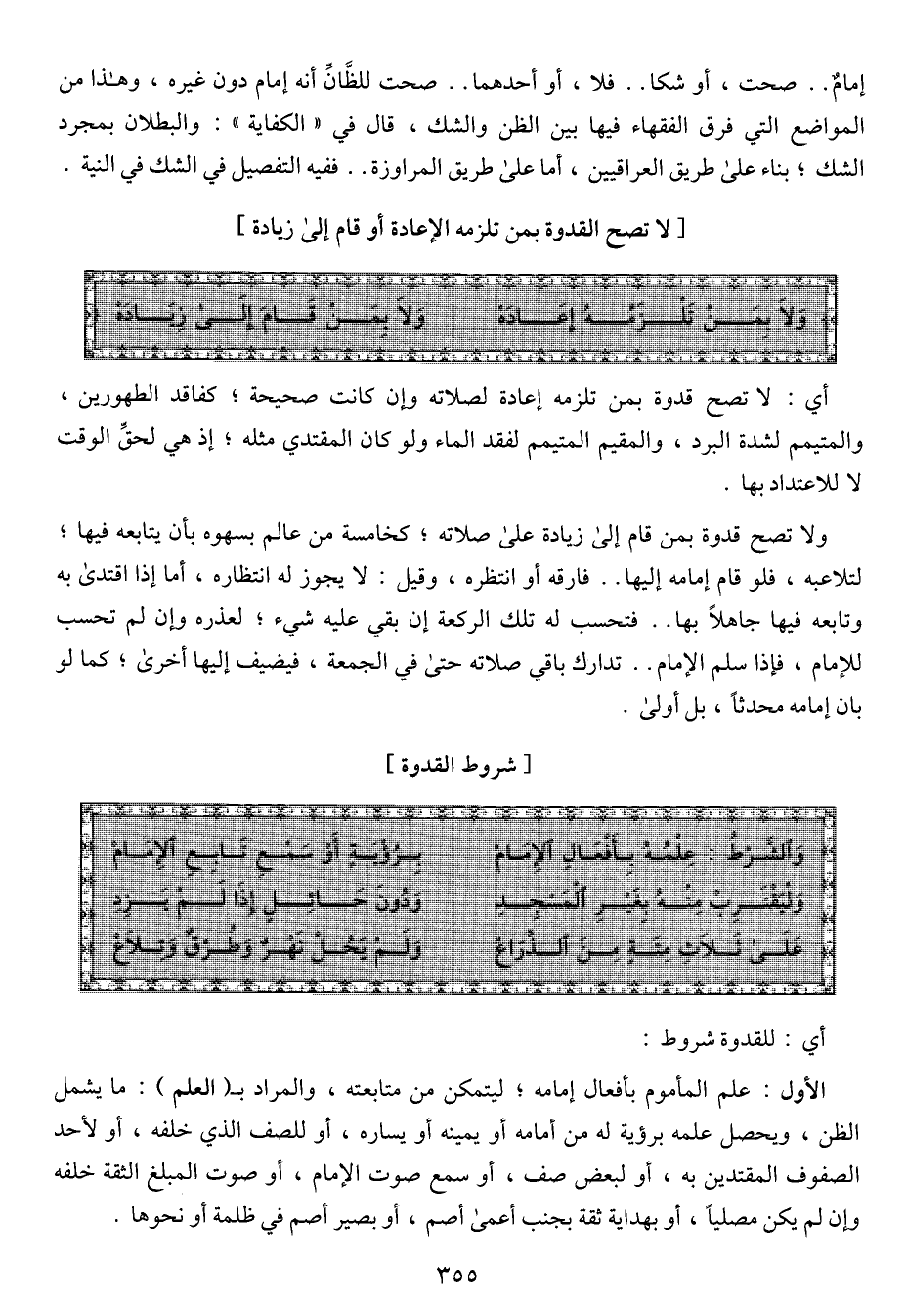 [لا تصح القدوة بمن تلزمه الإعادة أو قام إلى زيادة]