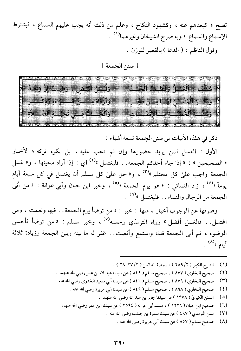 ذكر في هذه الأبيات من سنن الجمعة تسعة أشياء: