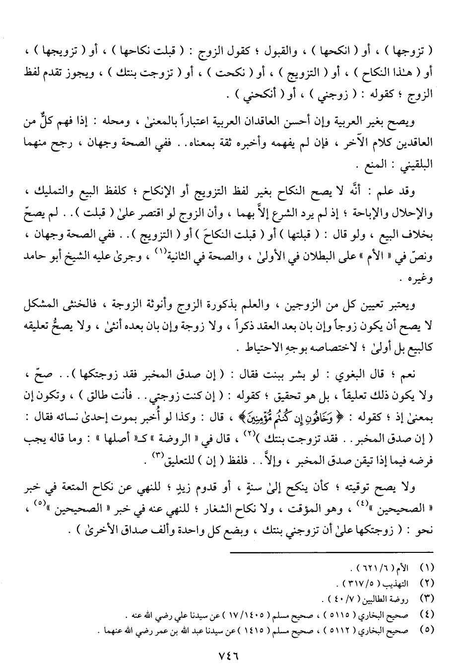 ويعتبر تعيين كل من الزوجين، والعلم بذكورة الزوج وأنوثة الزوجة، فالخنثى المشكل لا يصح أن يكون زوجاً وإن بان بعد العقد ذكراً، ولا زوجة وإن بان بعده أنثى، ولا يصح تعليقه كالبيع بل أولى؛ لاختصاصه بوجه الاحتياط.