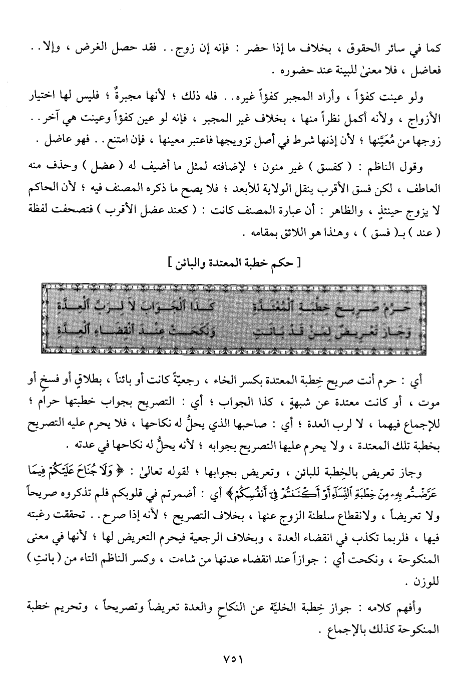 (وجاز تعريض لمن قد بانت ... ونكحت عند انقضاء العدة)
