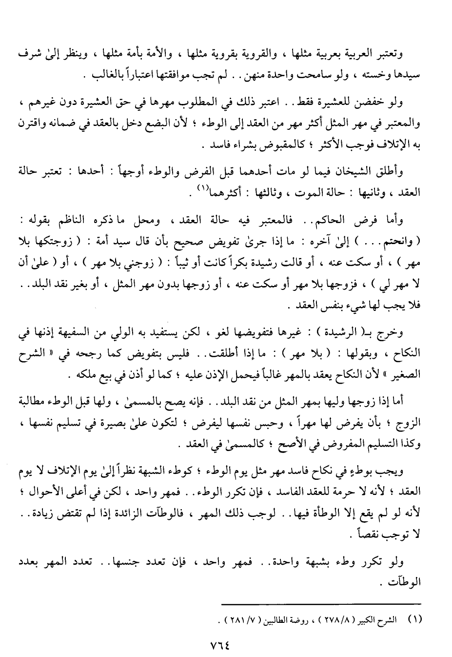 وتعتبر العربية بعربية مثلها، والقروية بقروية مثله، والأمة بأمة مثلها، وينظر إلى شرف سيدها وخسته، ولو سامحت واحدة منهن .. لم تجب موافقتها اعتبارا بالغالب.