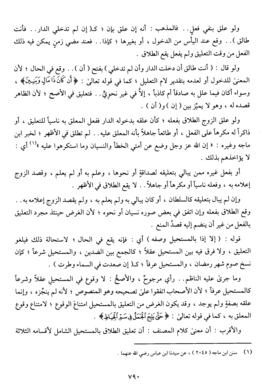 ولو علق الزوج الطلاق بفعله؛ كأن علقه بدخوله الدار ففعل المعلق به ناسياً للتعليق, أو ذاكراً له مكرهاً على الفعل, أو طائعاً جاهلاً بأنه المعلق عليه .. لم تطلق في الأظهر؛ لخبر ابن ماجه وغيره: «إن الله عز وجل وضع عن أمتي الخطأ والنسيان وما استكرهوا عليه» أي: لا يؤاخذهم بذلك.