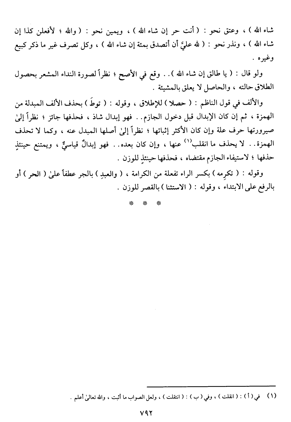 والألف في قول الناظم: (حصلا) للإطلاق, وقوله: (توط) بحذف الألف المبدلة من الهمزة, ثم إن كان الإبدال قبل دخول الجازم .. فهو إبدال شاذ, فحذفها جائز؛ نظراً إلى صيرورتها حرف علة وإن كان الأكثر إثباتها؛ نظراً إلى أصلها المبدل عنه, وكما لا تحذف الهمزة .. لا يحذف ما انقلب عنها, وإن كان بعده .. فهو إبدال قياسي, ويمتنع حينئذ حذفها؛ لاستيفاء الجازم مقتضاه، فحذفها حينئذ للوزن.