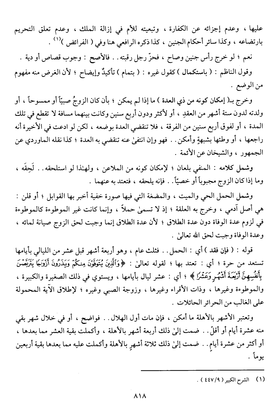 قوله: (فإن فقد) أي: الحمل .. فثلث عام, وهو أربعة أشهر قبل عشر من الليالي بأيامها تستعل من حرة؟ أي: تعتد بها؛ لقوله تعالى: {وَالَّذِينَ يُتَوَفَّوْنَ مِنكُمْ وَيَذَرُونَ أَزْوَاجًا يَتَرَبَّصْنَ بِأَنفُسِهِنَّ أَرْبَعَةَ أَشْهُرٍ وَعَشْرًا} [البقرة: 234]؛ أي: عشر ليال بأيامها, ويستوي في ذلك الصغيرة والكبيرة, والموطوءة وغيرها, وذات الأقراء وغيرها, وزوجة الصبي وغيره؛ لإطلاق الآية المحمولة على الغالب من الحرائر الحائلات.