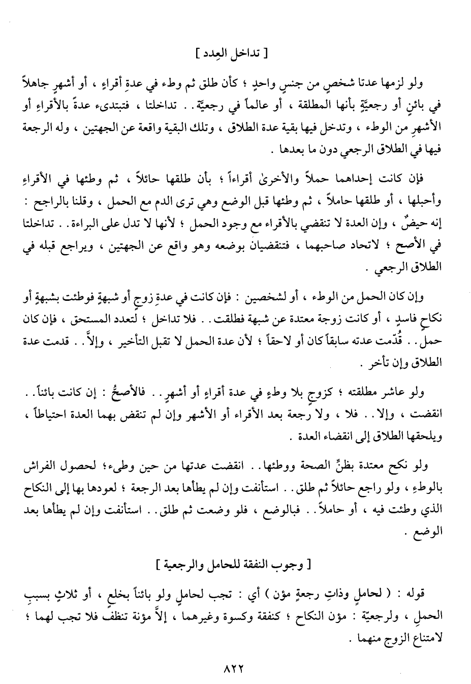 وإن كان الحمل من الوطء, أو لشخصين: فإن كانت في عدة زوج أو شبهة فوطئت بشبهة أو نكاح فاسد, أو كانت زوجة معتدة عن شبهة فطلقت .. فلا تداخل؛ لتعدد المستحق, فإن كان حمل .. قُدّمت عدته سابقاً كان أو لاحقاً؛ لأن عدة الحمل لا تقبل التأخير, وإلاَّ .. قدمت عدة الطلاق وإن تأخر.
