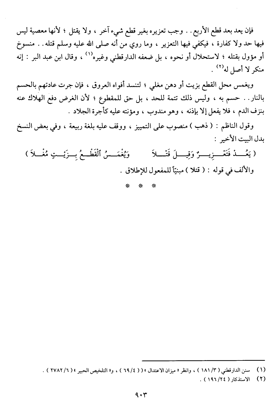 (يعد فتعزير وقيل قتلا ... ويغمس القطع بزيت مغلا)