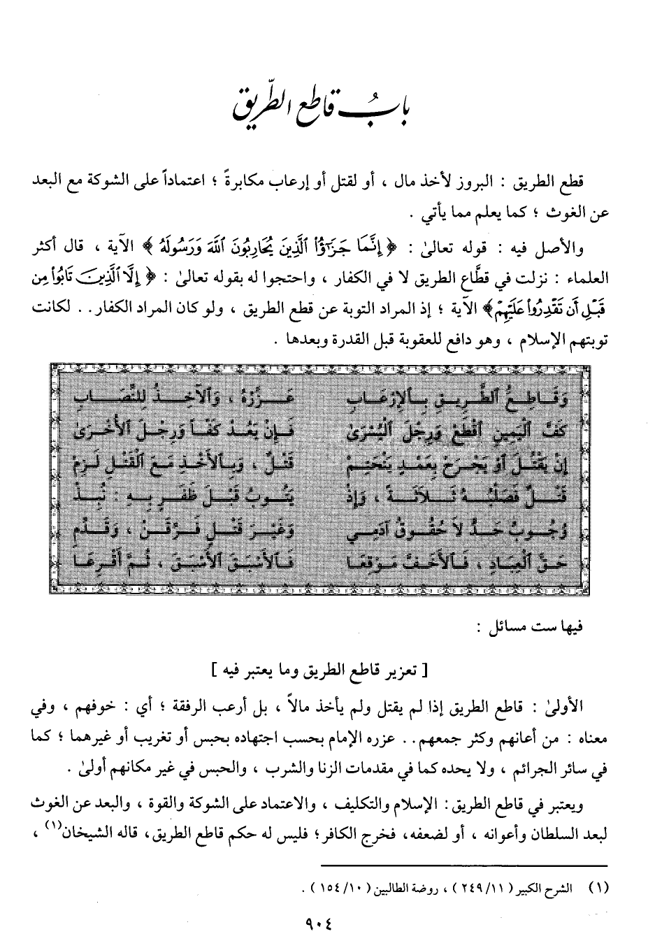 والأصل فيه: قوله تعالى: {إنما جزؤا الذين يحاربون الله ورسوله} الآية، قال أكثر العلماء: نزلت في قطاع الطريق لا في الكفار، واحتجوا له بقوله تعالى: {إلا الذين تابوا من قبل أن تقدروا عليهم} الآية؛ إذ المراد التوبة عن قطع الطريق، ولو كان المراد الكفار .. لكانت توبتهم الإسلام، وهو دافع للعقوبة قبل القدرة وبعدها.