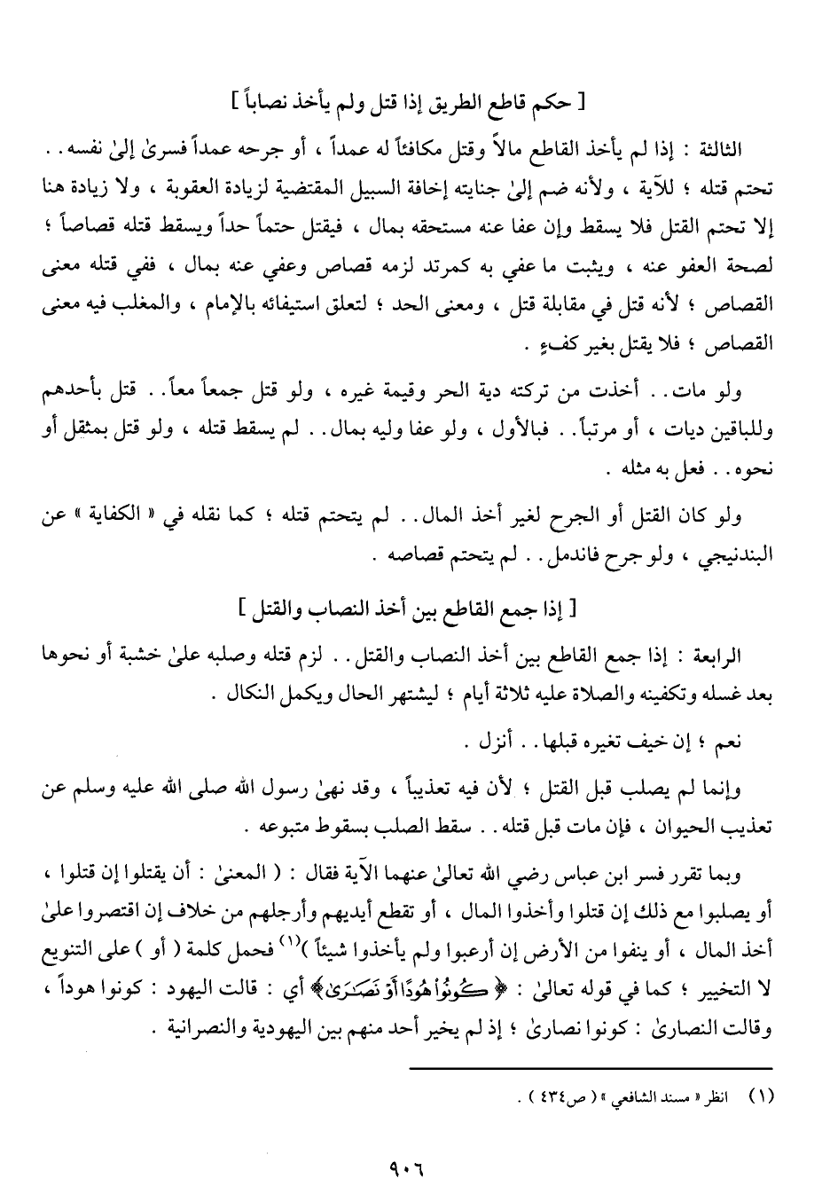 [حكم قاطع الطريق إذا قتل ولم يأخذ نصاباً]