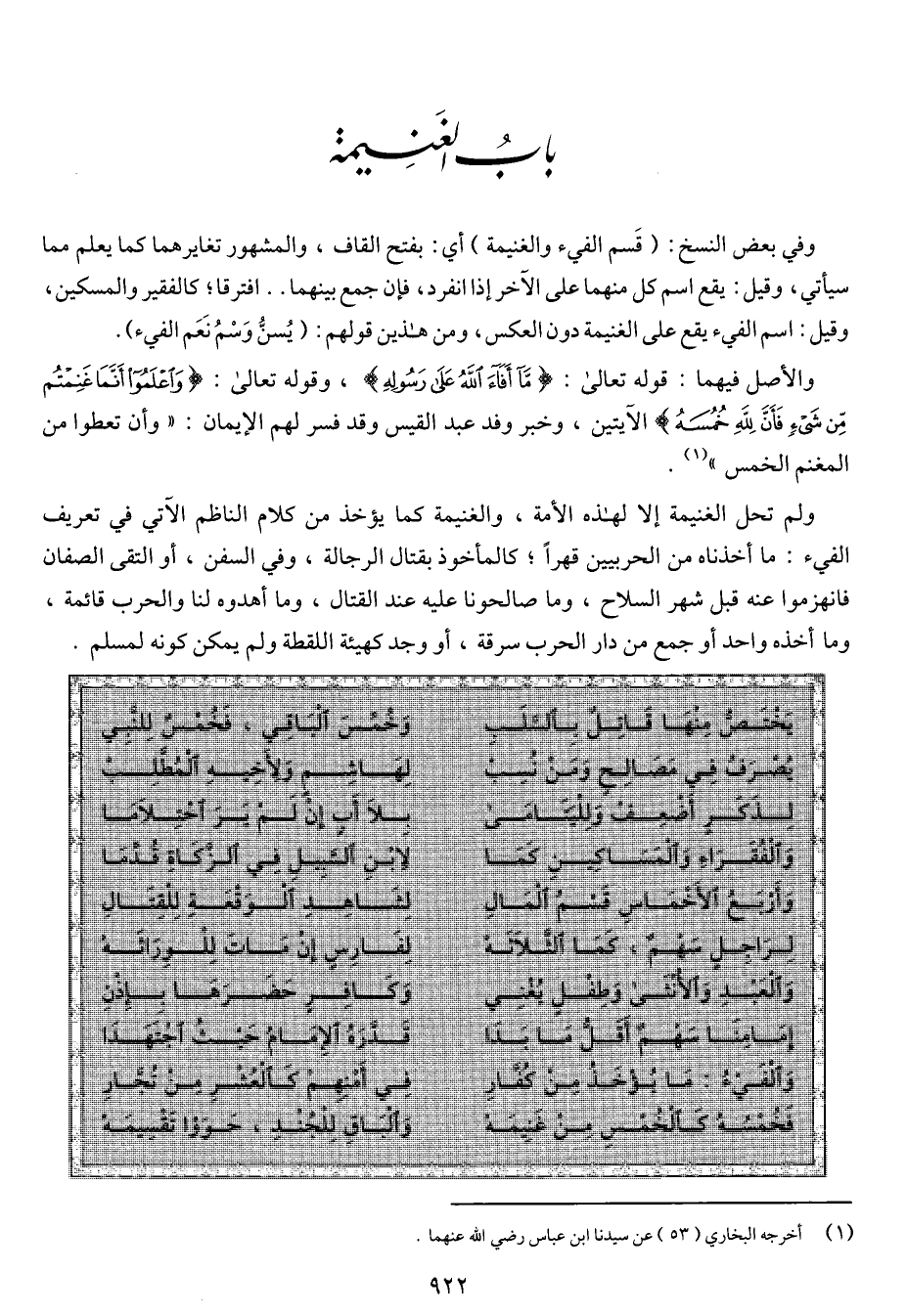 (فخمسه كالخمس من غنيمه ... والباق للجند، حووا تقسيمه)