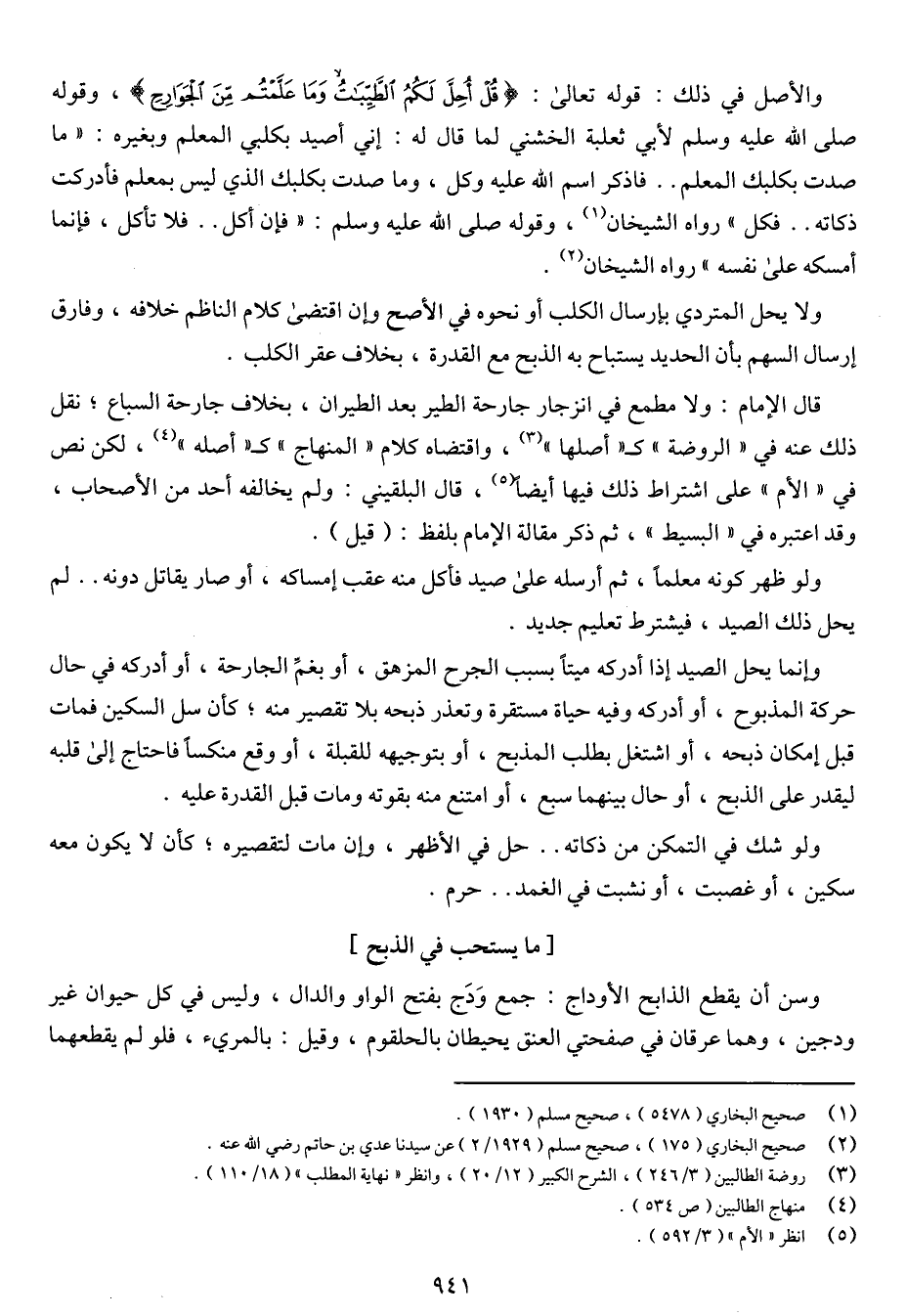 والأصل في ذلك: قوله تعالى: {قُلْ أُحِلَّ لَكُمُ الطَّيِّبَاتُ وَمَا عَلَّمْتُم مِّنَ الْجَوَارِحِ} [المائدة: 4] , وقوله صلى الله عليه وسلم لأبي ثعلبة الخشني لما قال له: إني أصيد بكلبي المعلم وبغيره: «ما صدت بكلبك المعلم .. فاذكر اسم الله عليه وكل, وما صدت بكلبك الذي ليس بمعلم فأدركت ذكاته .. فكل» رواه الشيخان", وقوله صلى الله عليه وسلم: «فإن أكل .. فلا تأكل, فإنما أمسكه على نفسه " رواه الشيخان".
