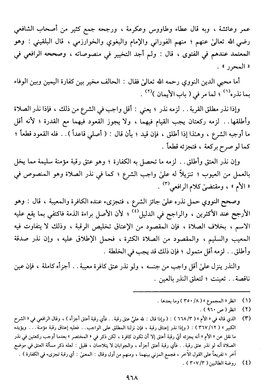 وصحح النووي حمل نذره على جائز الشرع، فتجزئ عنده الكافرة والمعيبة، قال: وهو الأرجح عند الأكثرين، والراجح في الدليل؛ لأن الأصل براءة الذمة فاكتفي بما يقع عليه الاسم، بخلاف الصلاة، فإن المقصود من الإعتاق تخليص الرقبة، وذلك لا يتفاوت فيه المعيب والسليم، والمقصود من الصلاة الكثرة، فحمل الإطلاق عليه، وإن نذر صدقة وأطلق .. لزمه أقل متمول؛ فإن ذلك قد يجب في الخلطة.