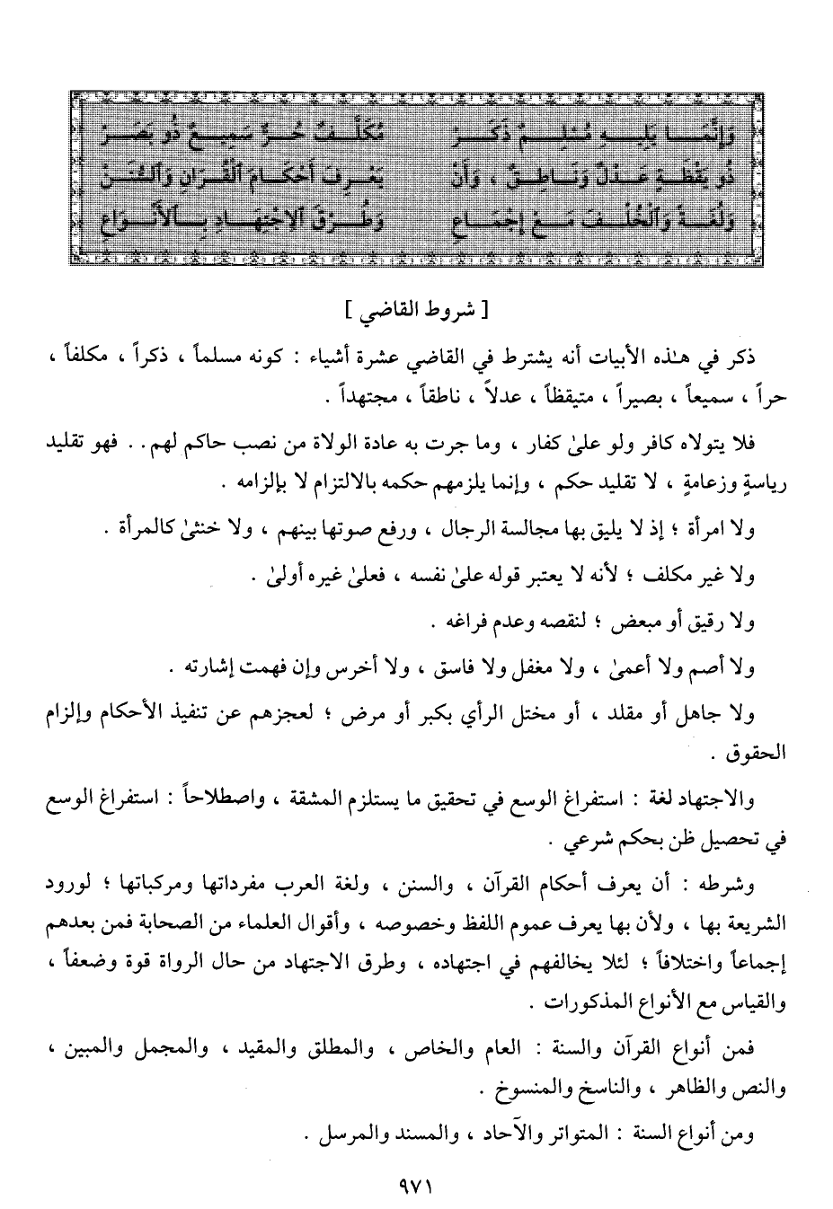 (ذو يقظه عدل وناطق، وأن ... يعرف أحكام القرآن والسنن)