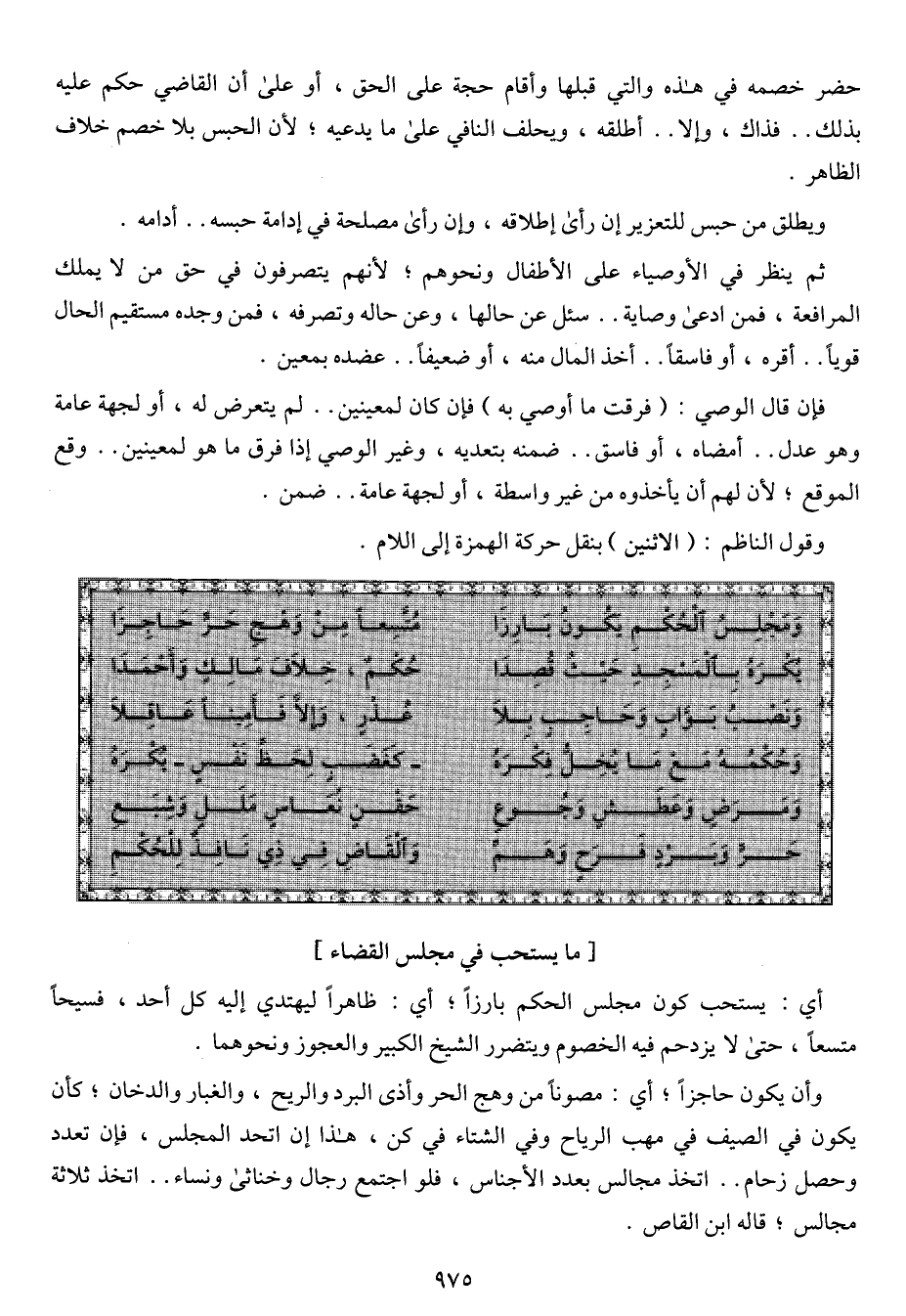 (ومجلس الحكم يكون بارزاً ... متسعاً من وهج حر حاجزاً)