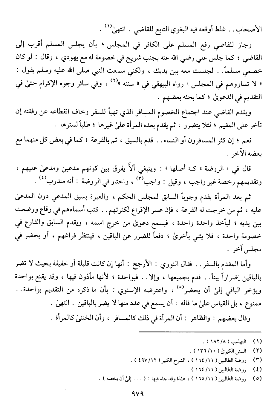 وجاز القاضي رفع المسلم على الكافر في المجلس؛ بأن يجلس المسلم أقرب إلى القاضي؛ كما جلس على رضي الله عنه بجنب شريح في خصومه له مع يهودي، وقال: لو كان خصمي مسلماً .. لجلست معه بين يديك، ولكني سمعت النبي صلى الله عليه وسلم يقول: "لا تساووهم في المجلس" وراه البيهقي في "سننه"، وفي سائر وجوه الإكرام حتى في التقديم في الدعوى؛ كما بحثه بعضهم.