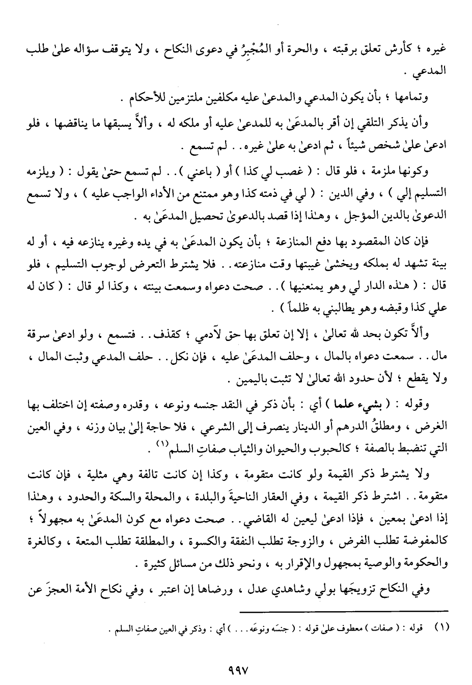 ولا يشترط ذكر القيمة ولو كانت متقومة، وكذا إن كانت تالفة وهي مثلية، فإن كانت متقومة .. اشترط ذكر القيمة، وفي العقار الناحية والبلدة، والمحلة والسكة والحدود، وهذا إذا ادعى بمعين، فإذا ادعى ليعين له القاضي .. صحت دعواه مع كون المدعى به مجهولاً؛ كالمفوضة تطلب الفرض، والزوجة تطلب النفقة والكسوة، والمطلقة تطلب المتعة، وكالغرة والحكومة والوصية بمجهول والإقرار به، ونحو ذلك من مسائل كثيرة.