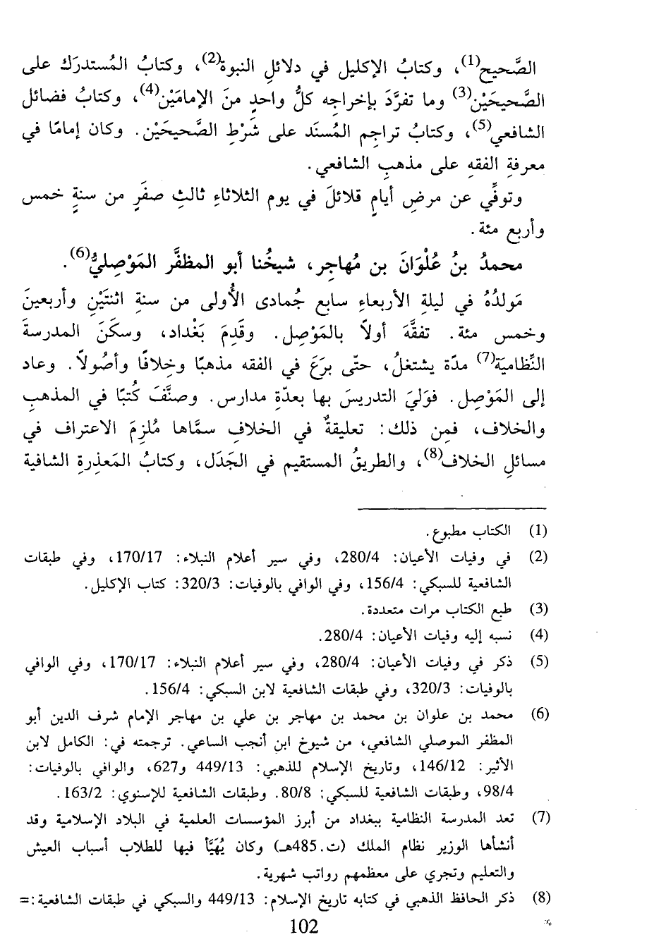 (¬5) ذكر في وفيات الأعيان:4/ 280، وفي سير أعلام النبلاء:17/ 170، وفي الوافي بالوفيات:3/ 320، وفي طبقات الشافعية لابن السبكي:4/ 156.