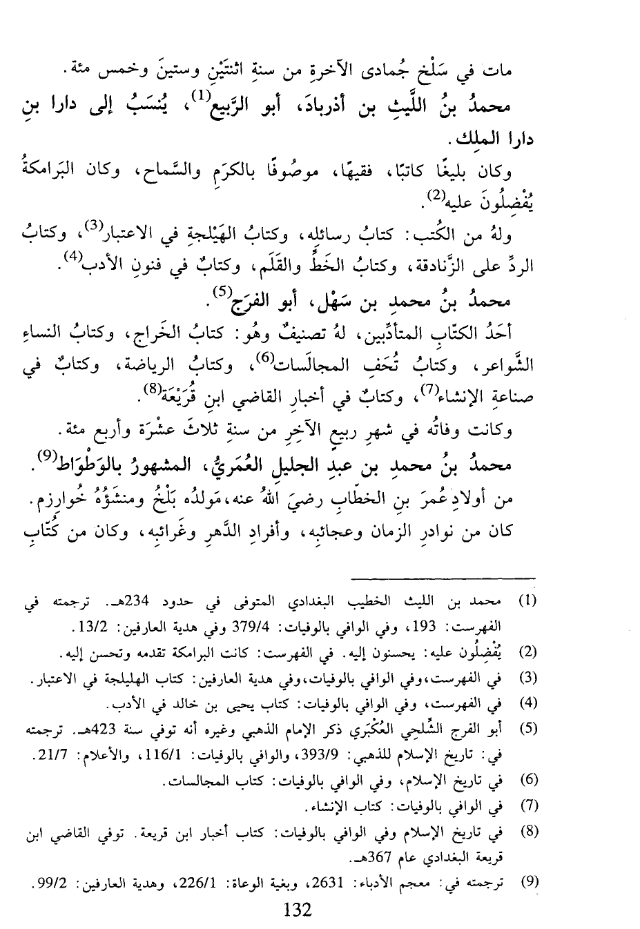 (¬8) في تاريخ الإسلام وفي الوافي بالوفيات: كتاب أخبار ابن قريعة. توفي القاضي ابن قريعة البغدادي عام 367 هـ.