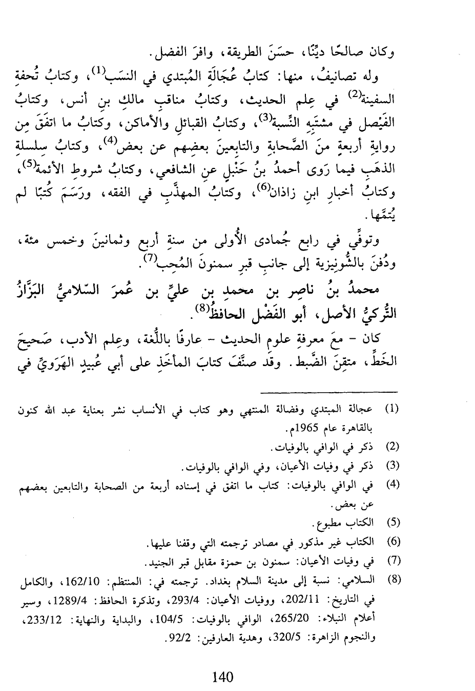(¬8) السلامي: نسبة إلى مدينة السلام بغداد. ترجمته في: المنتظم:10/ 162، والكامل في التاريخ:11/ 202، ووفيات الأعيان:4/ 293، وتذكرة الحافظ:4/ 1289، وسير أعلام النبلاء:20/ 265، الوافي بالوفيات:5/ 104، والبداية والنهاية:12/ 233، والنجوم الزاهرة:5/ 320، وهدية العارفين:2/ 92.