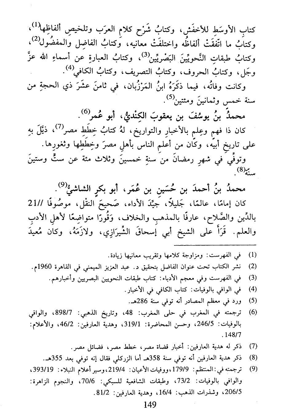 (¬8) ذكر هدية العارفين أنه توفي سنة 358 هـ أما الزركلي فقال إنه توفي بعد 355 هـ.