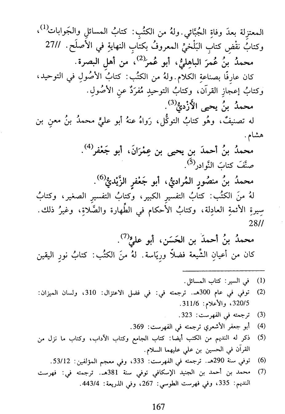 (¬7) محمد بن أحمد بن الجنيد الإسكافي توفي سنة 381 هـ. ترجمته في: فهرست النديم:335، وفي فهرست الطوسي:267، وفي الذريعة:4/ 443.