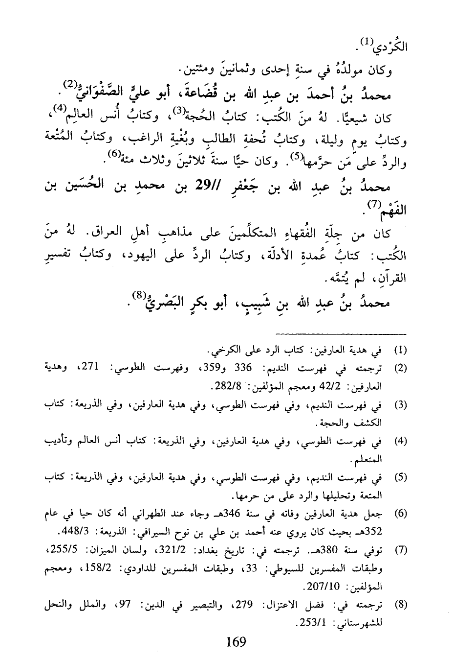 (¬2) ترجمته في فهرست النديم:336 و 359، وفهرست الطوسي:271، وهدية العارفين:2/ 42 ومعجم المؤلفين:8/ 282.