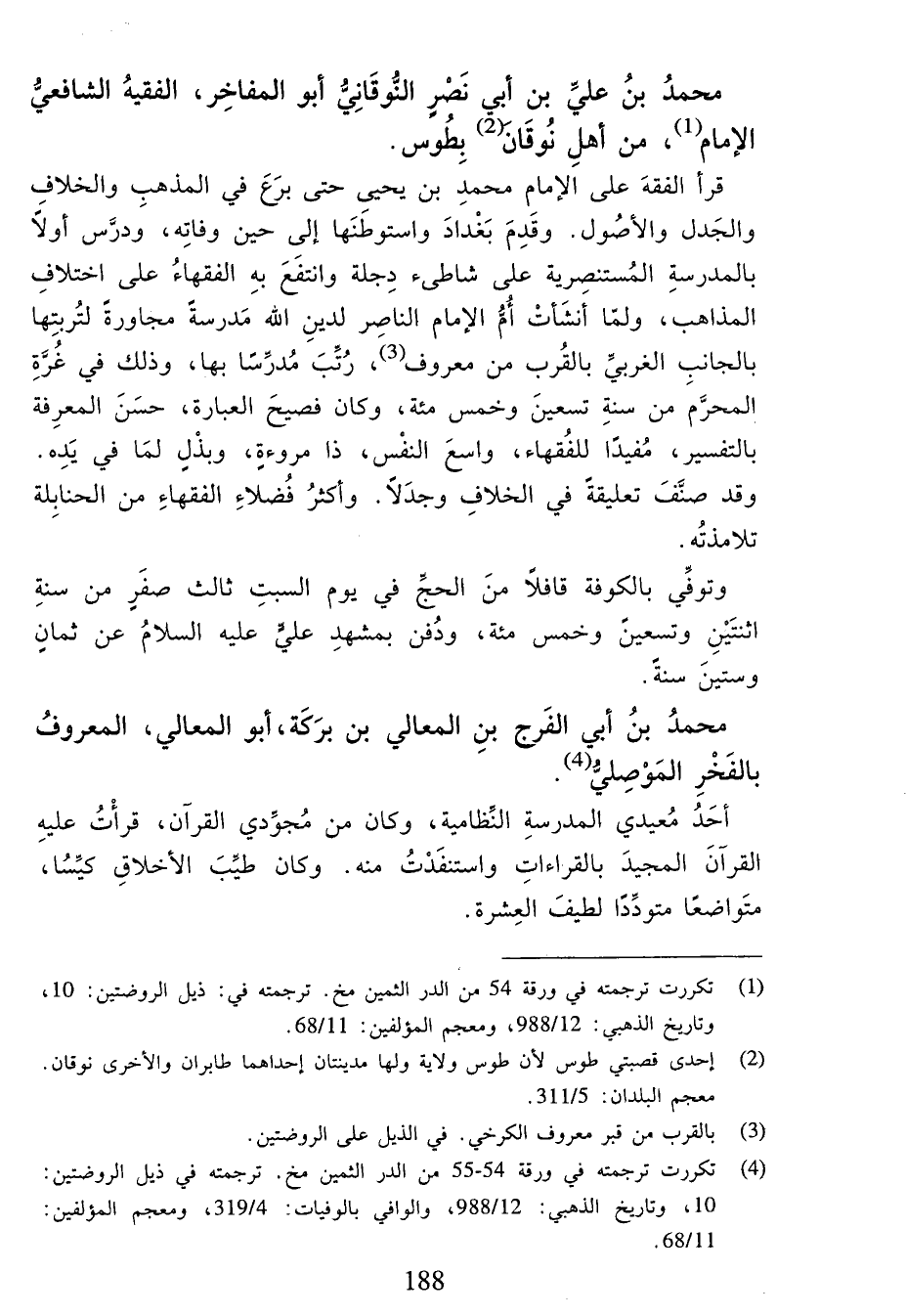 (¬2) إحدى قصبتي طوس لأن طوس ولاية ولها مدينتان إحداهما طابران والأخرى نوقان. معجم البلدان:5/ 311.