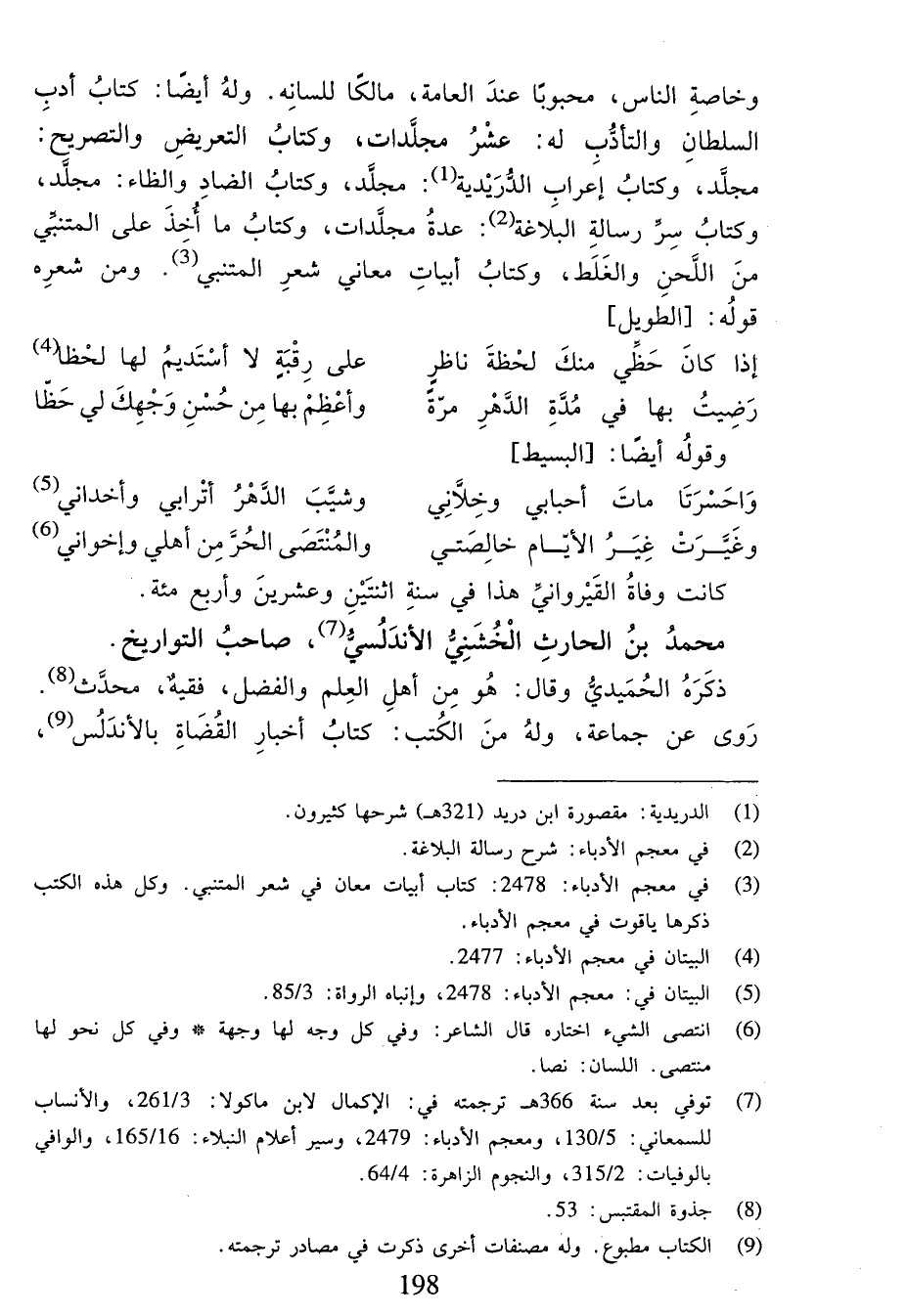 (¬3) في معجم الأدباء:2478: كتاب أبيات معان في شعر المتنبي. وكل هذه الكتب ذكرها ياقوت في معجم الأدباء.