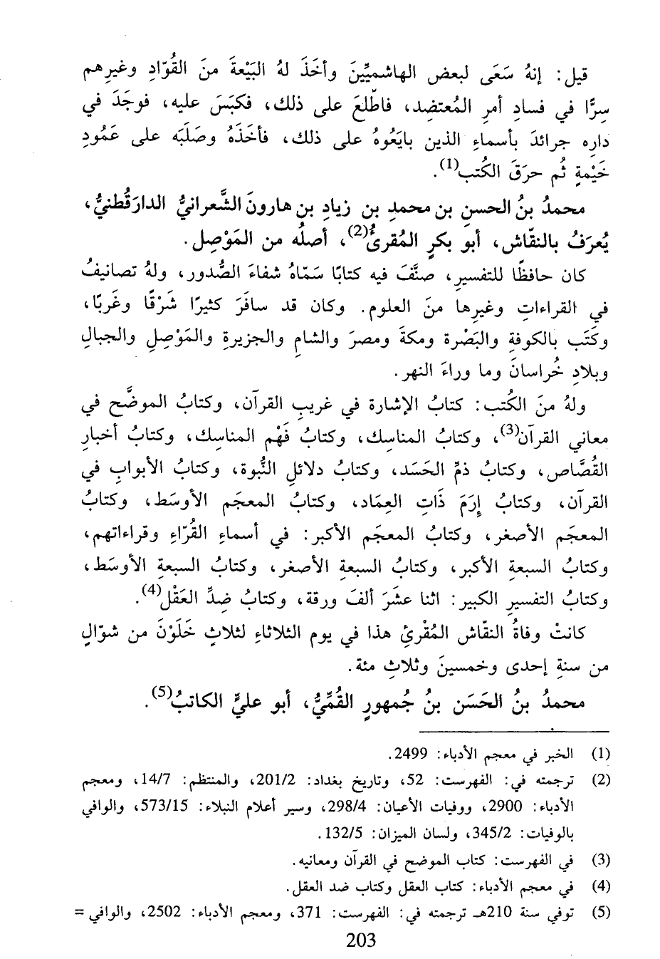 (¬2) ترجمته في: الفهرست:52، وتاريخ بغداد:2/ 201، والمنتظم:7/ 14، ومعجم الأدباء:2900، ووفيات الأعيان:4/ 298، وسير أعلام النبلاء:15/ 573، والوافي بالوفيات:2/ 345، ولسان الميزان:5/ 132.
