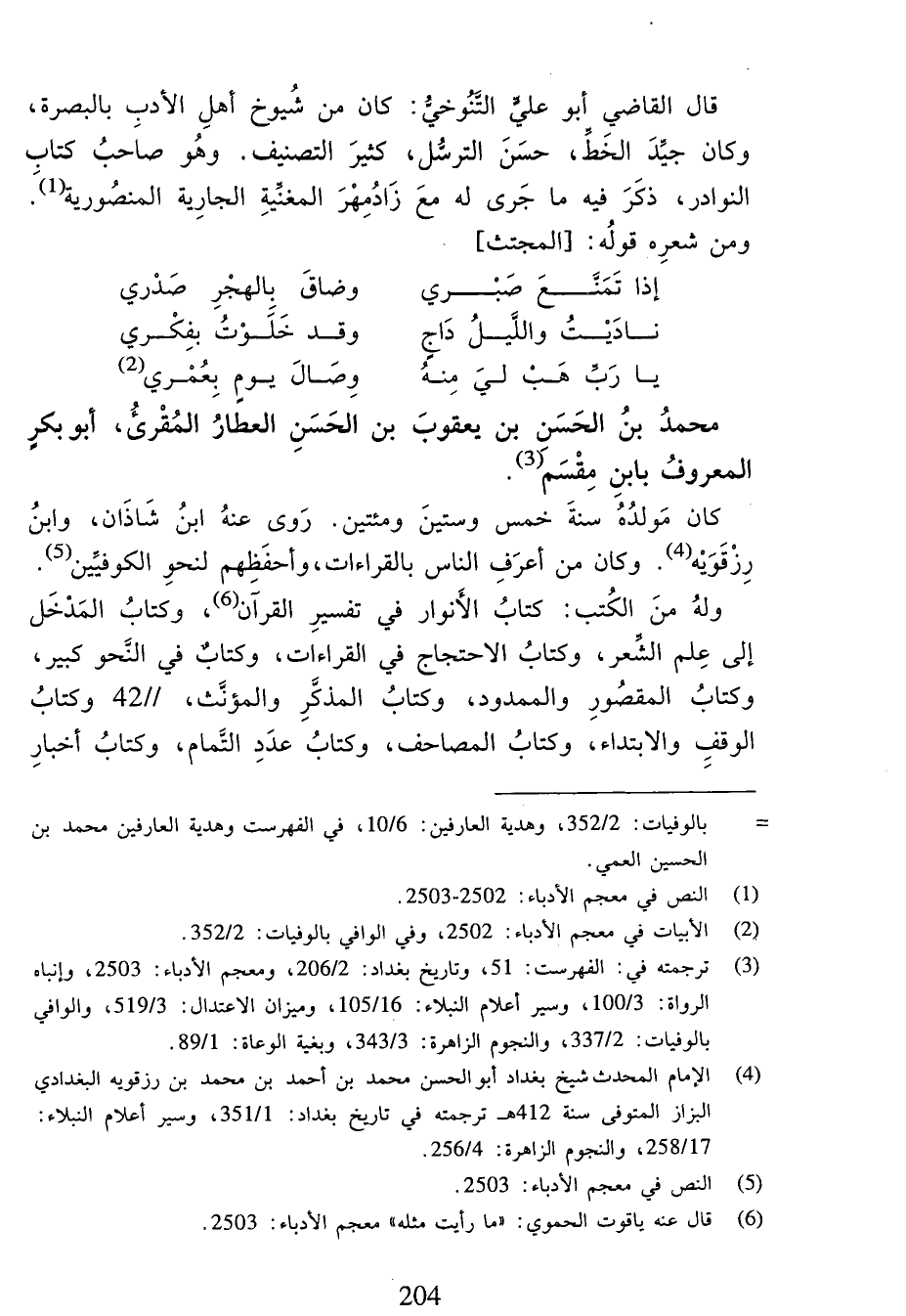 (¬6) قال عنه ياقوت الحموي: «ما رأيت مثله» معجم الأدباء:2503.