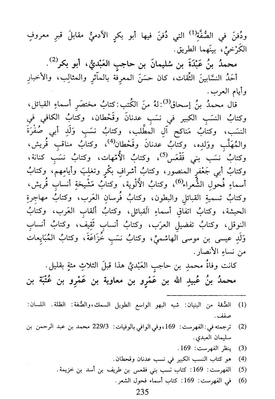 (¬2) ترجمته في: الفهرست:169، وفي الوافي بالوفيات:3/ 229 محمد بن عبد الرحمن بن سليمان العبدي.