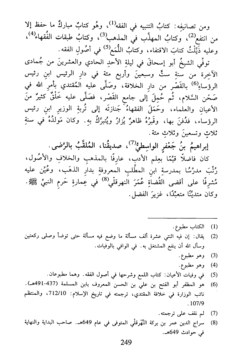 (¬5) في وفيات الأعيان: كتاب اللمع وشرحها في أصول الفقه. وهما مطبوعان.