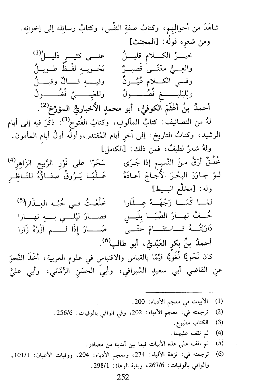 (¬6) ترجمته في: نزهة الألباء:274، ومعجم الأدباء:204، ووفيات الأعيان:1/ 101، والوافي بالوفيات:6/ 267، وبغية الوعاة:1/ 298.