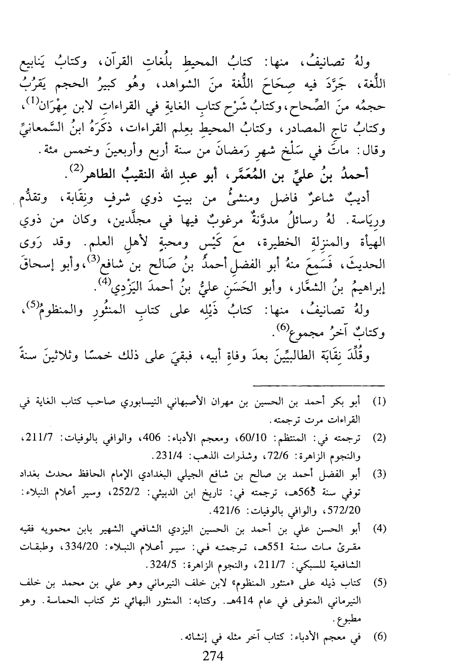 أحمد بن عليّ بن المعمّر، أبو عبد الله النقيب الطاهر (¬2).