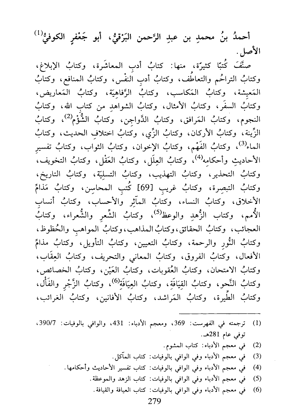 (¬1) ترجمته في الفهرست:369، ومعجم الأدباء:431، والوافي بالوفيات:7/ 390، توفي عام 281 هـ.