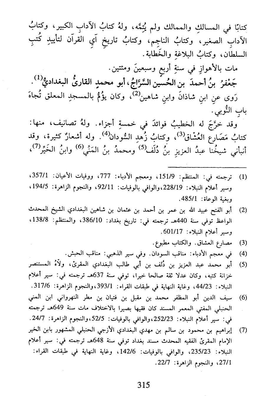 (¬1) ترجمته في: المنتظم:9/ 151، ومعجم الأدباء:777، ووفيات الأعيان:1/ 357، وسير أعلام النبلاء:19/ 228، والوافي بالوفيات:11/ 92، والنجوم الزاهرة:5/ 194، وبغية الوعاة:1/ 485.