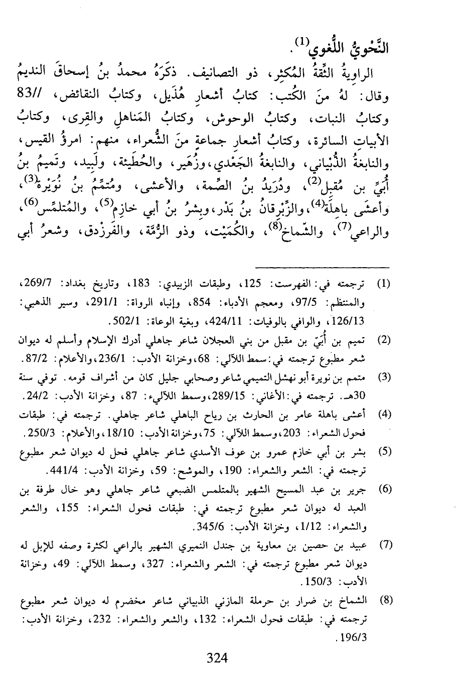 (¬1) ترجمته في: الفهرست:125، وطبقات الزبيدي:183، وتاريخ بغداد:7/ 269، والمنتظم:5/ 97، ومعجم الأدباء:854، وإنباه الرواة:1/ 291، وسير الذهبي: 13/ 126، والوافي بالوفيات:11/ 424، وبغية الوعاة:1/ 502.