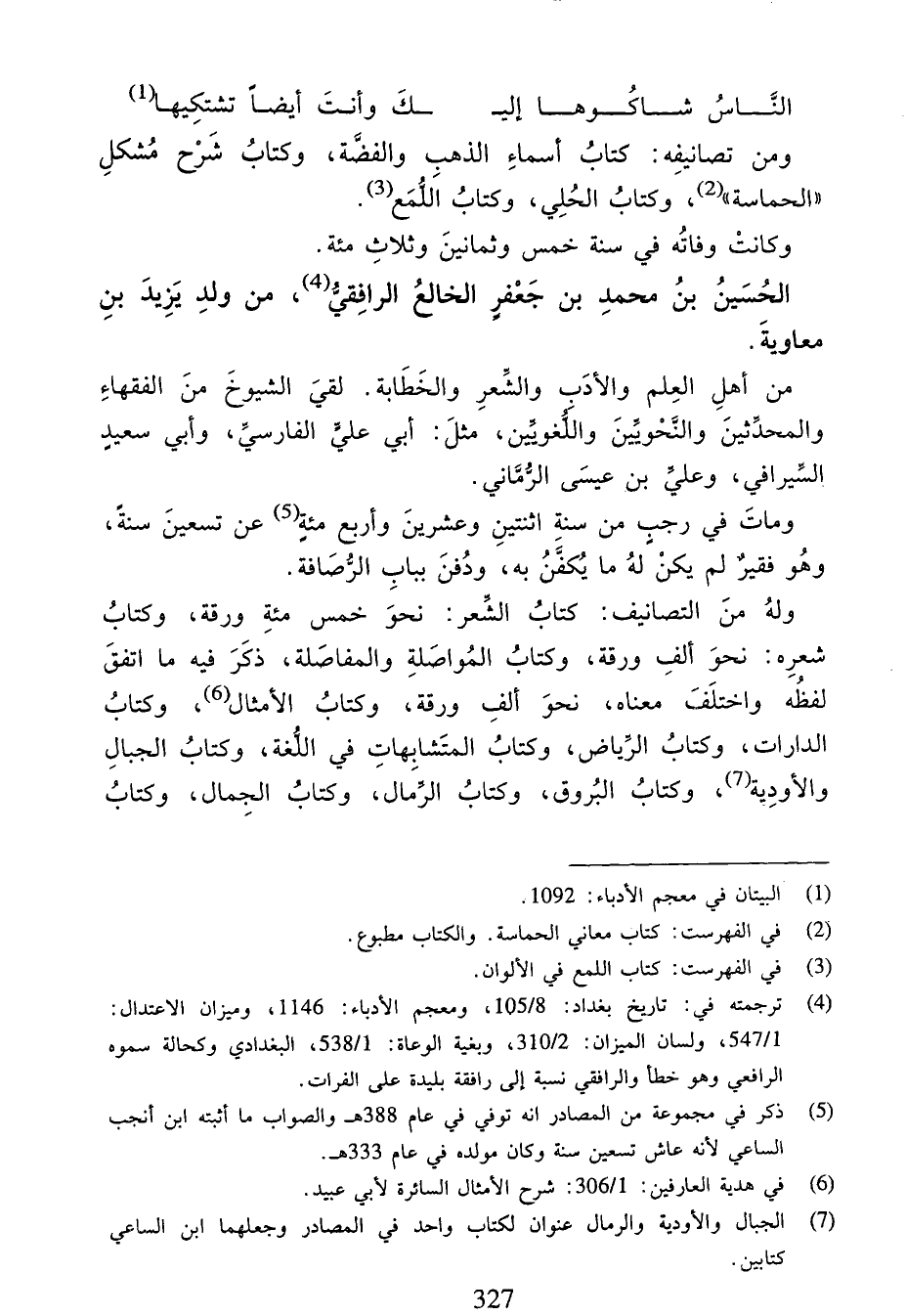 (¬4) ترجمته في: تاريخ بغداد:8/ 105، ومعجم الأدباء:1146، وميزان الاعتدال: 1/ 547، ولسان الميزان:2/ 310، وبغية الوعاة:1/ 538، البغدادي وكحالة سموه الرافعي وهو خطأ والرافقي نسبة إلى رافقة بليدة على الفرات.