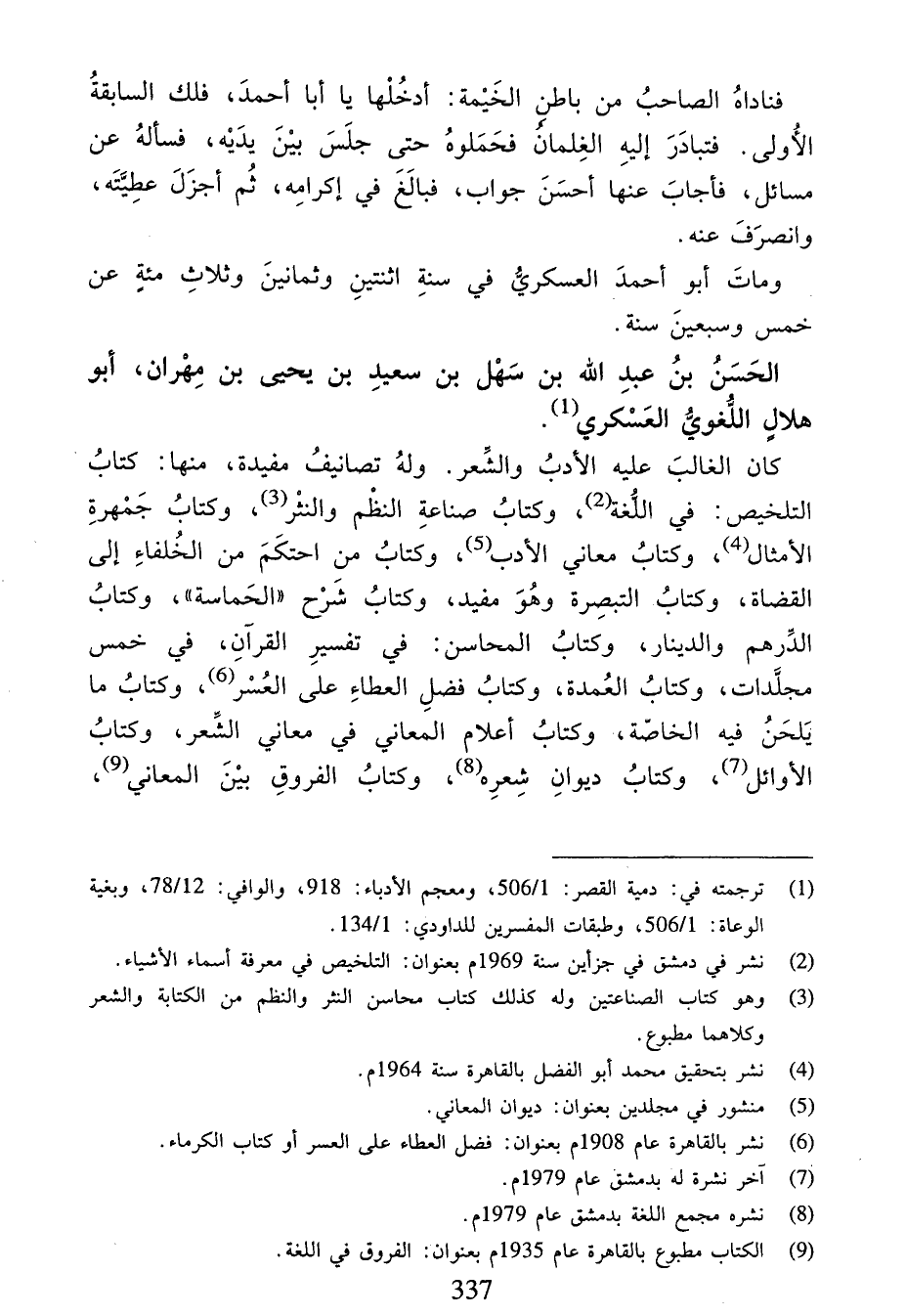 (¬9) الكتاب مطبوع بالقاهرة عام 1935 م بعنوان: الفروق في اللغة.