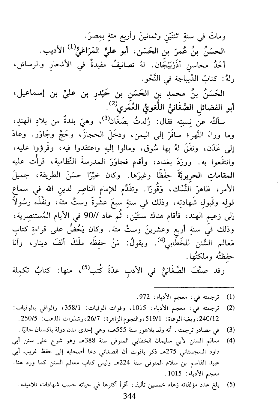 (¬4) معالم السنن لأبي سليمان الخطابي المتوفى سنة 388 هـ وهو شرح على سنن أبي داود السجستاني 275 هـ ذكر ياقوت أن الصغاني دعا أصحابه إلى حفظ غريب أبي عبيد القاسم بن سلام المتوفى سنة 224 هـ وليس كتاب معالم السنن كما ورد هنا. معجم الأدباء:1015.