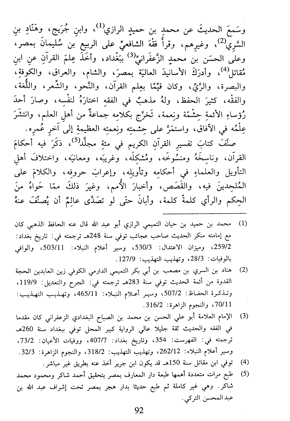 (¬4) توفي ابن مقاتل سنة 150 هـ قد يكون ابن جرير أخذ عنه بطريق غير مباشر.