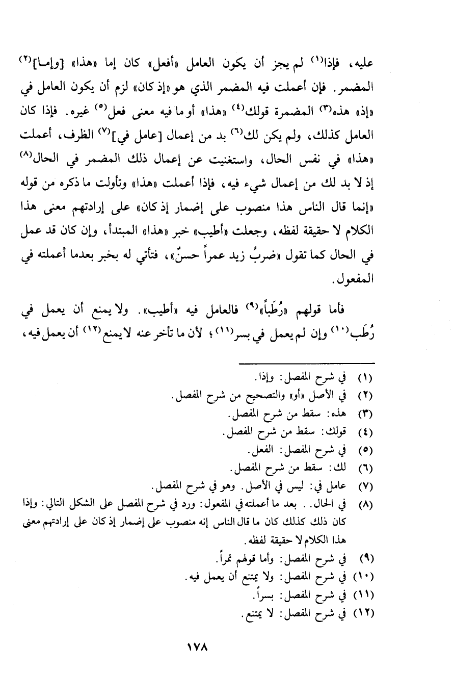 عليه، فإذا لم يجز أن يكون العامل "أفعل" كان إما "هذا" [وإما] المضمر. فإن أعملت فيه المضمر الذي هو "إذ كان" لزم أن يكون العامل في "إذ" هذه المضمرة قولك "هذا" أو ما فيه معنى فعل غيره. فإذا كان العامل كذلك، ولم يكن لك بد من إعمال [عامل في] الظرف، أعملت "هذا" في نفس الحال، واستغنيت عن إعمال ذلك المضمر في الحال إذ لابد لك من إعمال شيء فيه، فإذا أعملت "هذا" وتأولت ما ذكره من قوله "إنما قال الناس هذا منصوب على إضمار إذ كان" على إرادتهم معنى هذا الكلام لا حقيقة لفظه، وجعلت "أطيب" خبر "هذا" المبتدأ، وإن كان قد عمل في الحال كما تقول "ضرب زيد عمراً حسنٌ"، فتأتي له بخبر بعدما أعملته في المفعول.