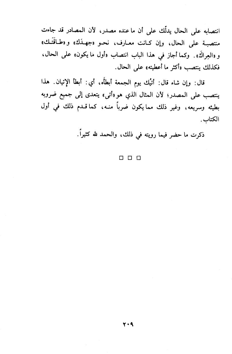 قال: وإن شاء قال: أتيك يوم الجمعة أبطأه، أي: أبطأ الإتيان. هذا ينتصب على المصدر؛ لأن المثال الذي هو "أتى" يتعدى إلى جميع ضروبه بطيئه وسريعه، وغير ذلك مما يكون ضرباً منه، كما قدم ذلك في أول الكتاب.
