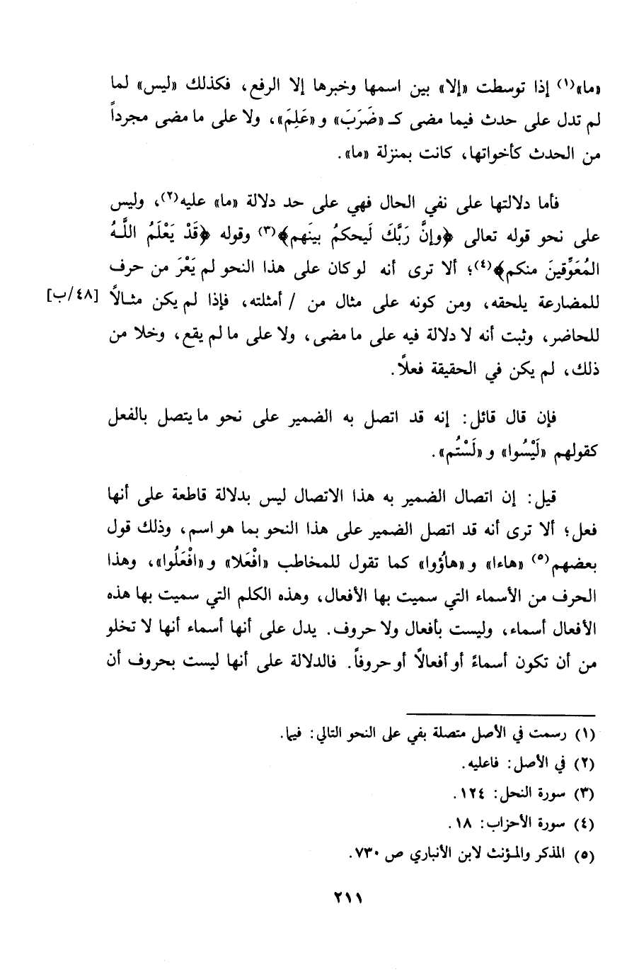 "ما" إذا توسطت "إلا" بين اسمها وخبرها إلا الرفع، فكذلك "ليس" لما لم تدل على حدث فيما مضى كـ "ضَرَبَ" و "عَلِمَ"، ولا على ما مضى مجرداً من الحدث كأخواتها، كانت بمنزلة "ما".