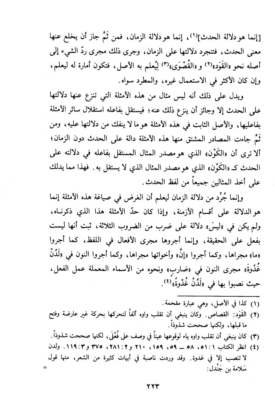 [إنما هو دلالة الحدث]، إنما هو دلالة الزمان، فمن ثم جاز أن يخلع عنها معنى الحدث، فتتجرد دلالتها على الزمان، وجرى ذلك مجرى رد الشيء إلى أصله نحو "القود" و "القُصوى" ليُعلم به الأصل، فتكون أمارة له ليعلم، وإن كان الأكثر في الاستعمال غيره، والمطرد سواه.