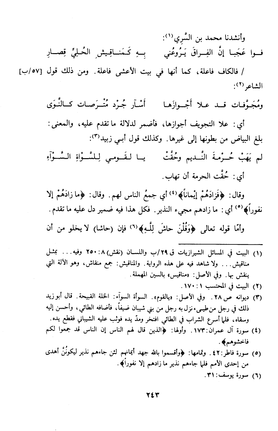 وأنشدنا محمد بن السري: