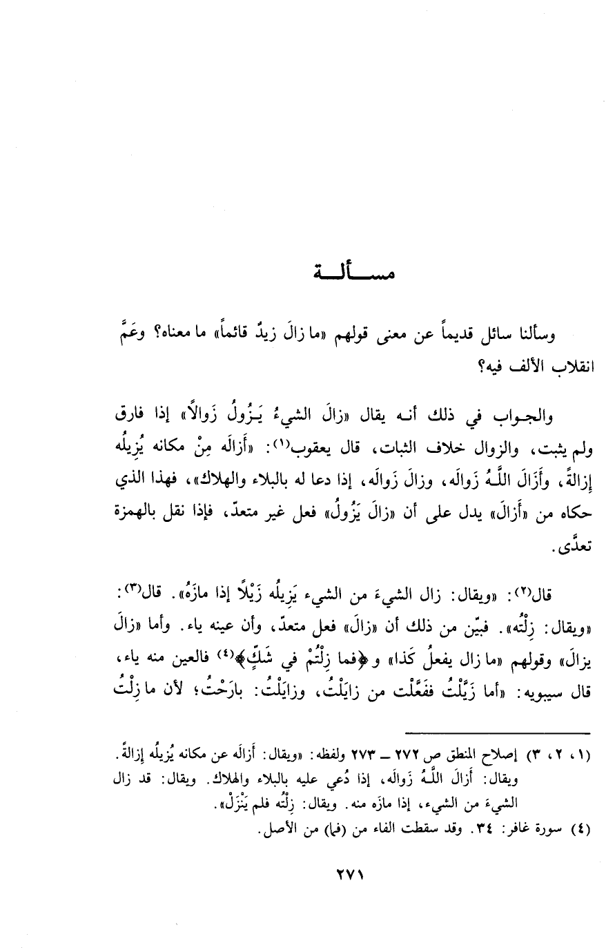 وسألنا سائل قديماً عن معنى قولهم "ما زال زيدٌ قائماً" ما معناه؟ وعم انقلاب الألف فيه؟