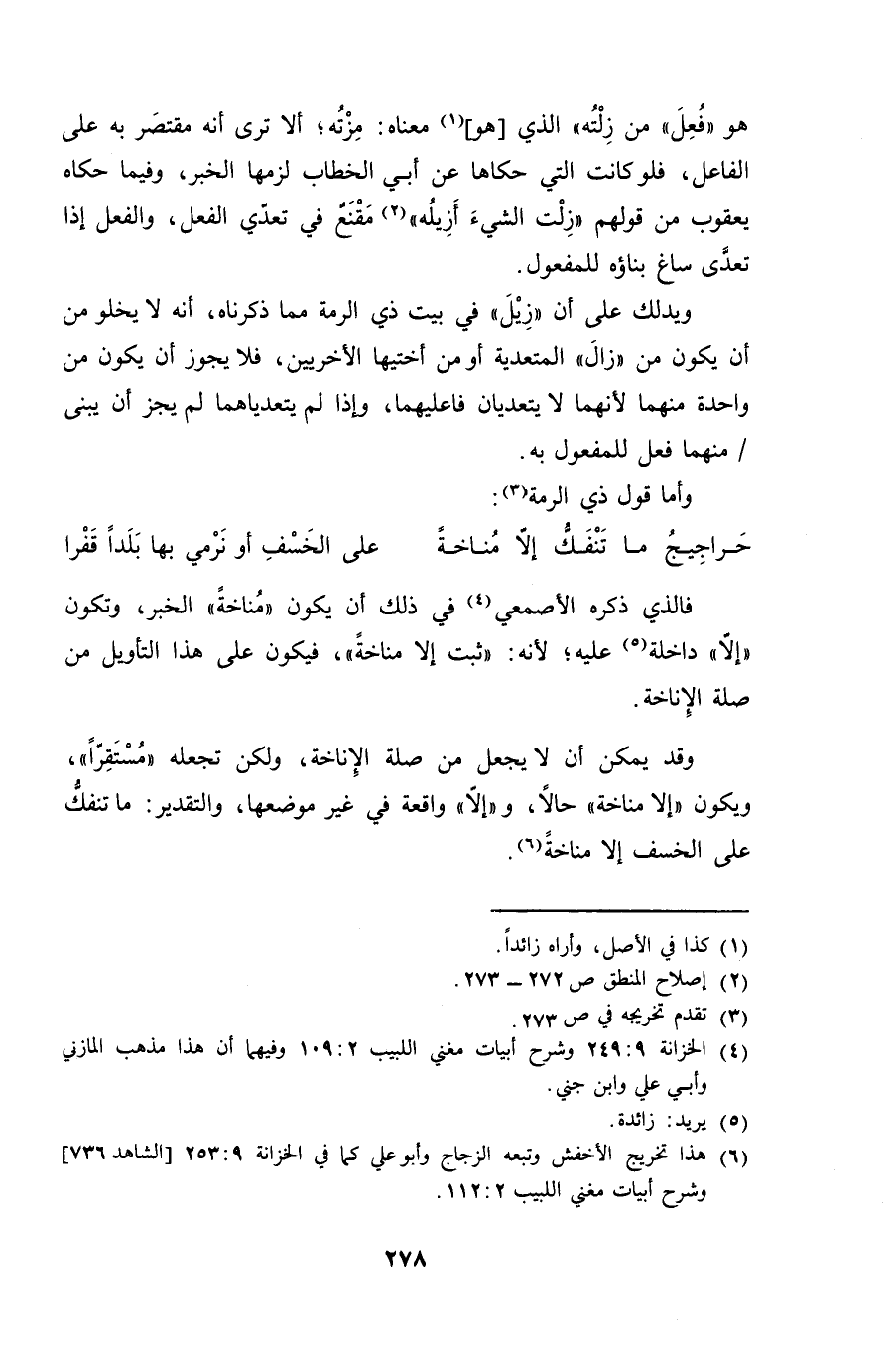فالذي ذكره الأصمعي في ذلك أن يكون "مُناخةً" الخبر، وتكون "إلا" داخله عليه؛ لأنه: "ثبت إلا مناخةً"، فيكون على هذا التأويل من صلة الإناخة.