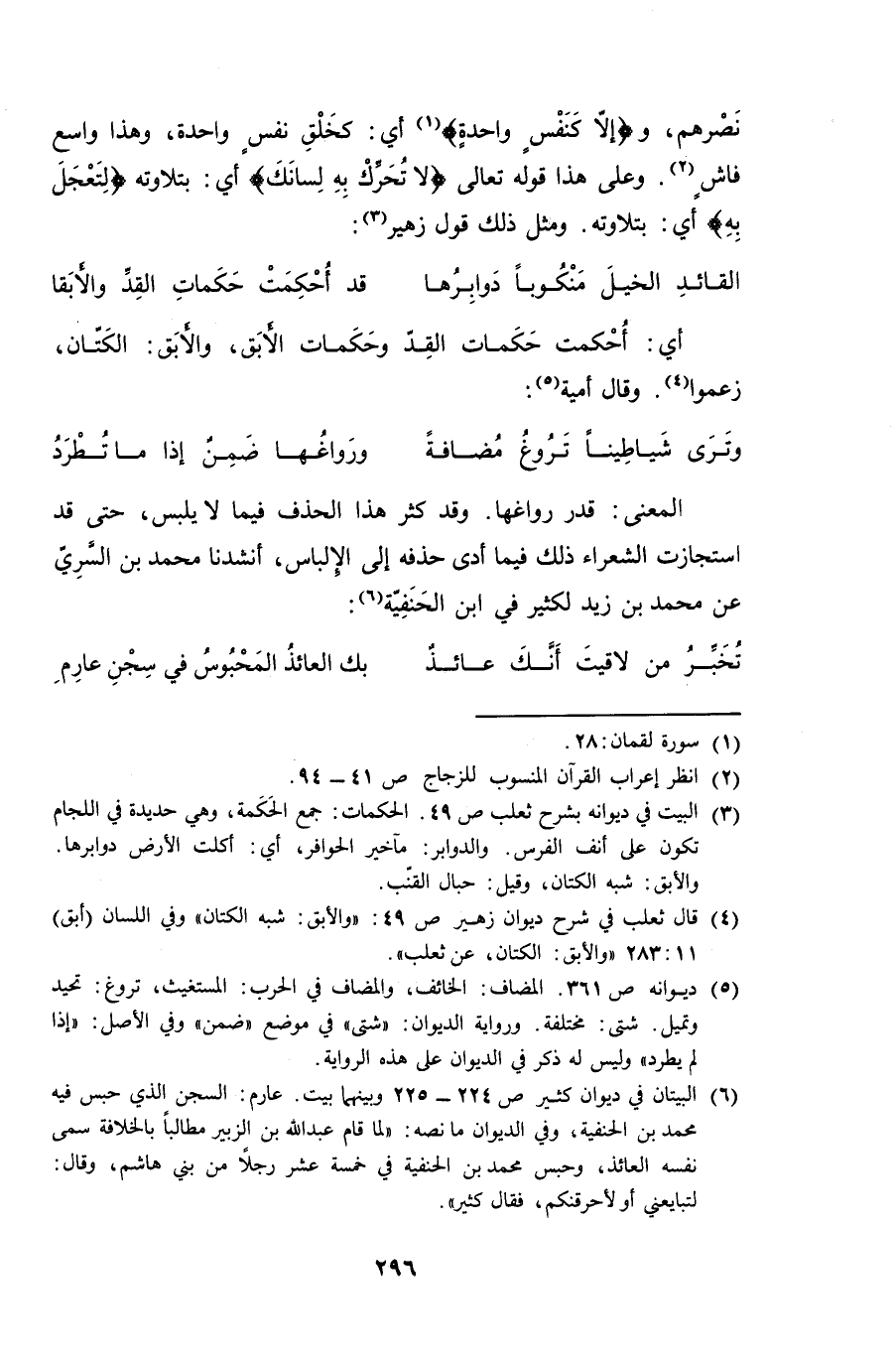 نصرهم، و {إلا كنفسٍ واحدةٍ} أي: كخلق نفسٍ واحدة، وهذا واسع فاشٍ. وعلى هذا قوله تعالى {لا تحرك به لسانك} أي: بتلاوته {لتعجل به} أي: بتلاوته. ومثل ذلك قول زهير:
