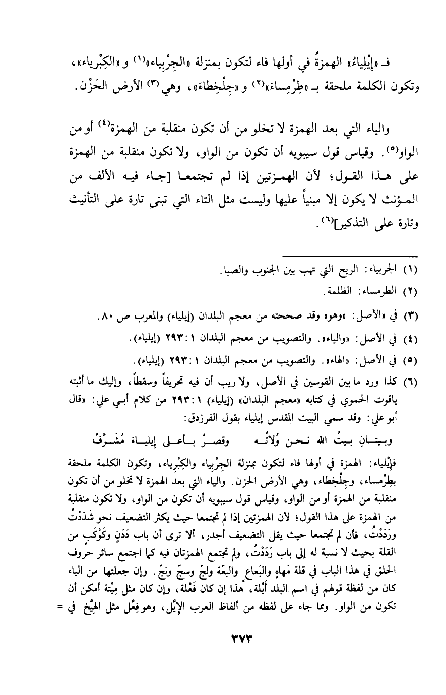 فـ "إيلياء" الهمزة في أولها فاء لتكون بمنزلة "الجربياء" و "الكبرياء"، وتكون الكلمة ملحقة بـ "طِرمساء" و "جلخطاء"، وهي الأرض الحزن.